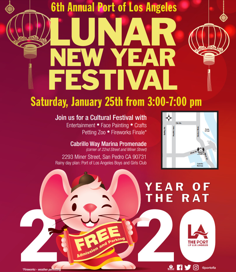 Join the Port of Los Angeles in celebrating Lunar New Year on the LA Waterfront. 2020 is the year of the rat! This free cultural festival offers free parking and free admission, with live entertainment, arts and crafts, face painting, and more.
