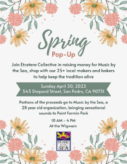 Join Etcetera Collective in raising money for Music by the Sea, shop with our 25+ local makers and bakers to help keep the tradition alive. Portions of the proceeds go to Music by the Sea, a 28 year old organization, bringing sensational sounds to Point Fermin Park at the “Wigwam”.