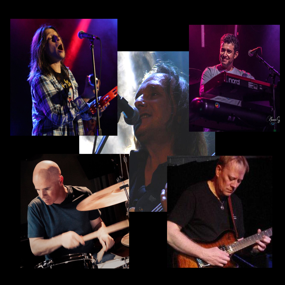 Steve Bonino (bass) and Peter Matuchniak (guitar) are both members of the critically acclaimed band Bomber Goggles whose debut album ‘Gyerland’ spent weeks in the top ten at Prog Archives. Drummer, Jimmy Keegan is a past member of the all time great prog band Spock’s Beard and played drums on Santana’s ‘Supernatural’ album. Jonathan Sindelman has performed with Allan White (Yes), Mike Keneally (Frank Zappa) and Joe Travers (Zappa Plays Zappa). Seth Romano currently performs with Steve in one of California’s top cover bands, ‘The Trip’.