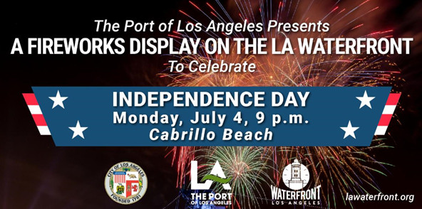On Monday, July 4, at 9 p.m., the Port of Los Angeles will sponsor a fireworks show to celebrate Independence Day! Best place to view fireworks: Cabrillo Beach.