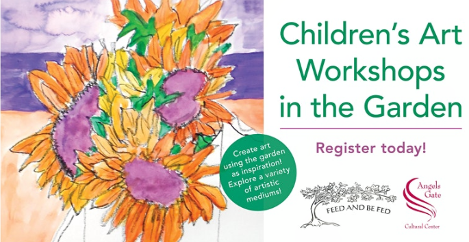 Angels Gate Cultural Center and Feed & Be Fed are partnering on this new Art Workshop series for children, ages 5-12! On the following Saturdays, 10:30 – 11:30am: Dec. 11, 2021; April 9, 2022; June 11, 2022.