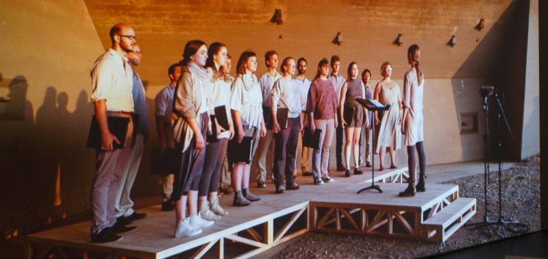 At 4pm Jimena Sarno will present a choir performance by the C3LA Choir activating her “From Sea to Shining Sea” experience. Borrowing its title from the last line of the song “America the Beautiful”, the project utilizes the acoustic qualities of the site, ballistics data and weapon sounds as re-structuring parameters to deconstruct and rearrange the song for a choir performance. The reimagined musical score breaks down the phonemes and syllables of the lyrics in this iconic tune and expands them into 12 minutes of haunting mantra and firings of voices across the sonic field.