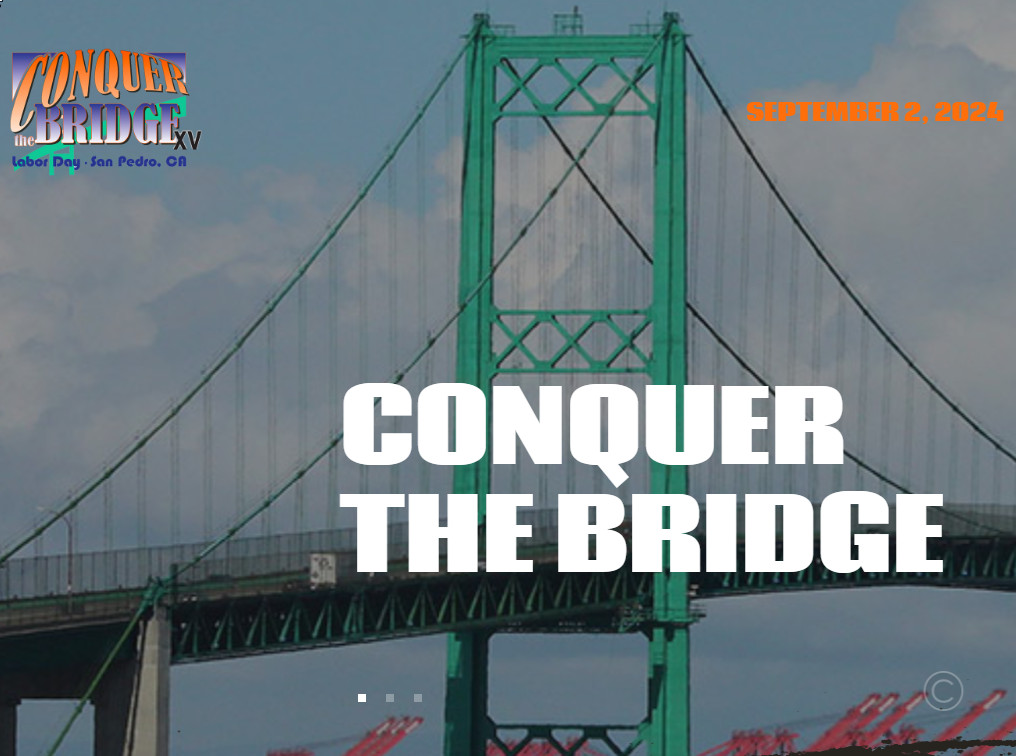 This year will mark our 15th Conquer The Bridge Race (Run or Walk). This Race provides you the highly unique opportunity to take a special journey over the historical Vincent Thomas Bridge in San Pedro, CA this coming Labor Day September 2, 2024. Become a Conqueror!