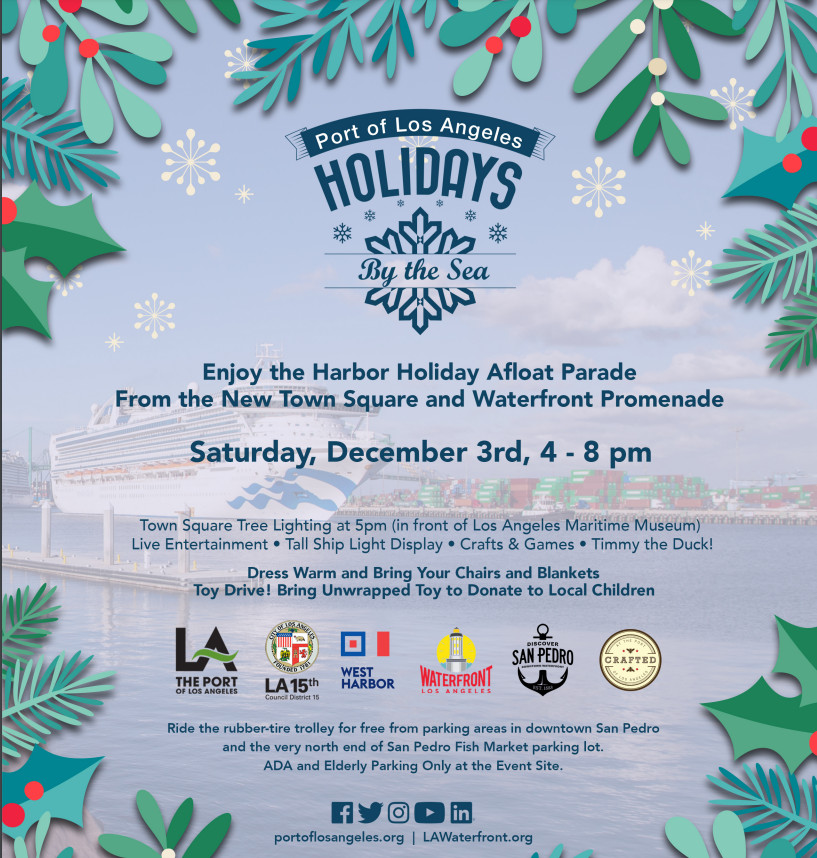 Town Square Tree Lighting at 5pm (in front of the Los Angeles Maritime Museum)