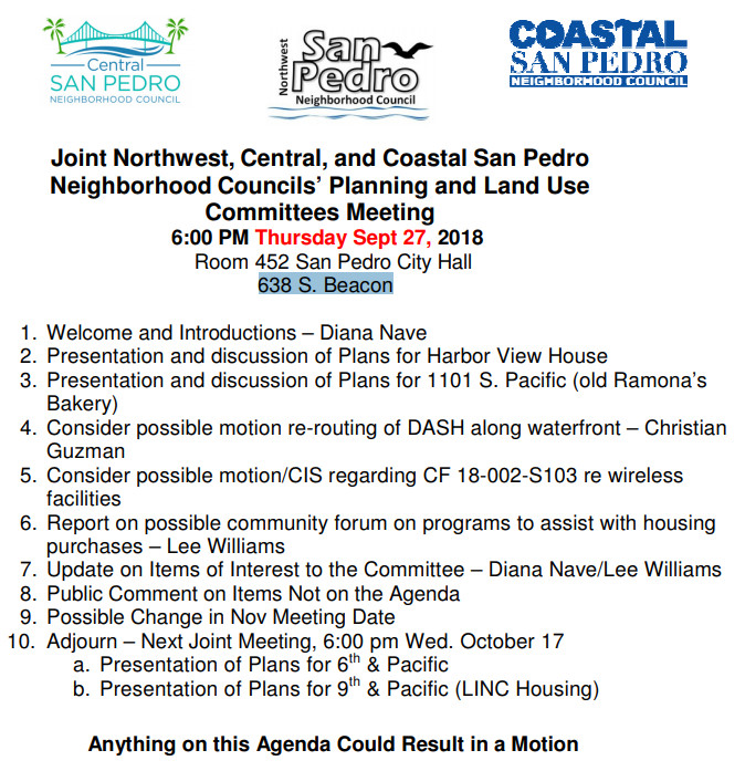 Joint Northwest, Central, and Coastal San Pedro Neighborhood Councils’ Planning and Land Use Committees Meeting