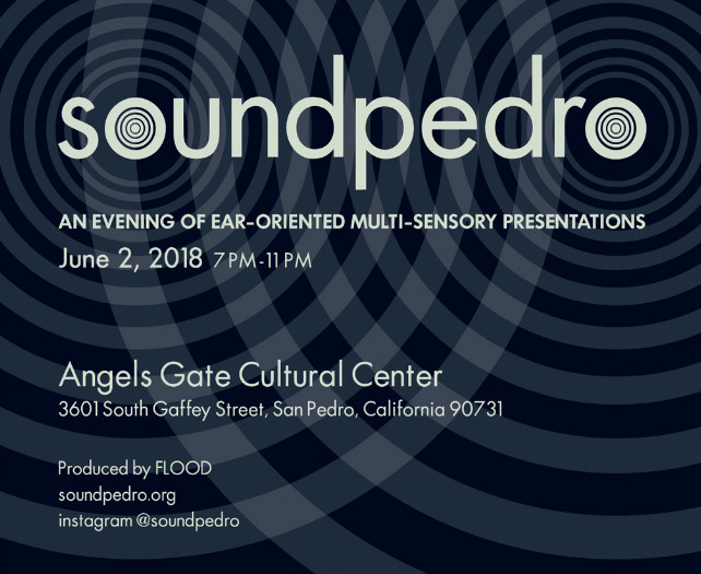 This 2nd soundpedro event, highlighting ear-oriented art, will showcase single- and multi- media artworks that investigate the way we perceive and experience. It is produced, in partnership with Angels Gate Cultural Center, by FLOOD who for 10 years brought SoundWalk to Long Beach.