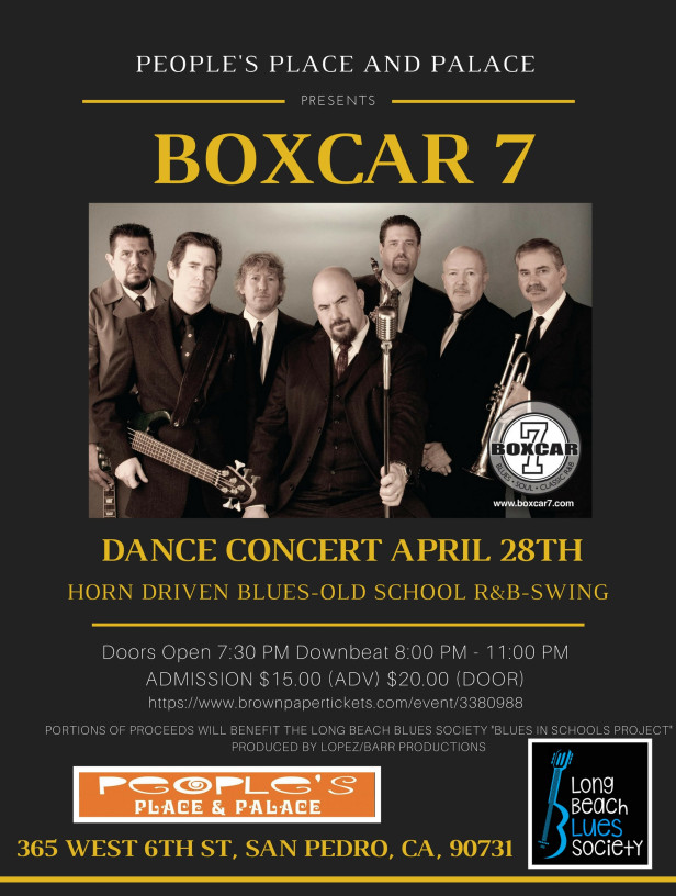 Boxcar 7 is a seven-piece band from Southern California, whose passion is the blues, soul, old school R&B, classic rock, swing and a taste of funk. Sets of inspirational blues music include B.B. King, Otis Redding, Ray Charles, Blues Brothers, Wilson Pickett, Sam & Dave and more. "The Big band sound of the seven-piece group Read More ...