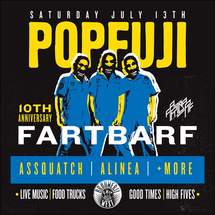 Our free summer concert series continues, as our third POPFUJI of the year is set to be a monster of a show! Join us, Saturday, July 13th as we celebrate the 10th Anniversary of a legendary local act, Fartbarf! Special guests to include: ASSQUATCH bobby blunders Alinea the Band Delfino Squared and our homie DJ Read More ...
